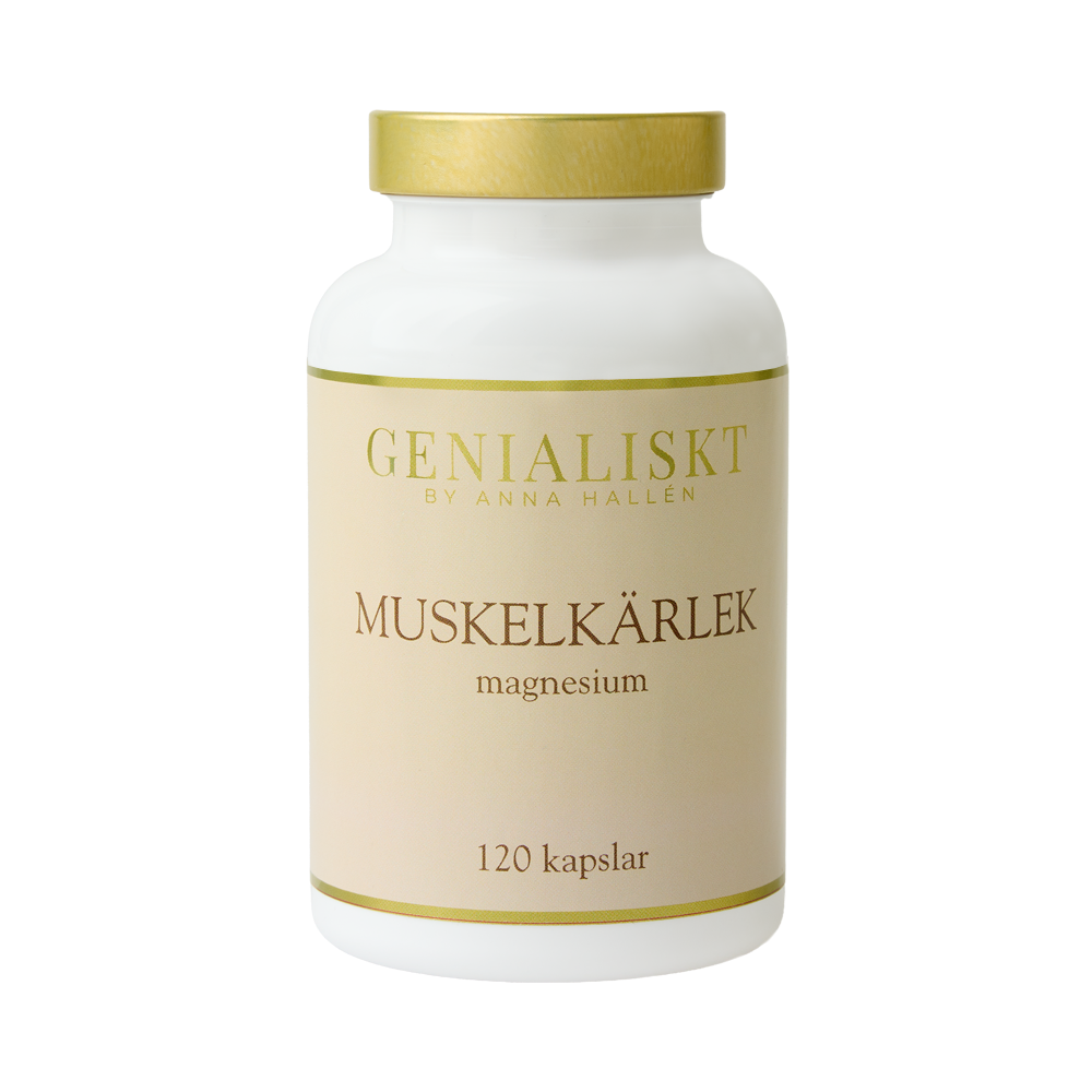 MUSKELKÄRLEK är ett genomtänkt magnesiumtillskott med två kompletterande former som ger kroppen ett balanserat stöd. Magnesium bidrar till normal muskelfunktion, nervsystemets funktion och elektrolytbalans, och används kontinuerligt i muskelarbete, nervsignalering och avslappning. Kombinationen är vald för god biotillgänglighet och hög tolerans, vilket gör den lätt att använda även dagligen. Muskelkärlek passar särskilt vid träning, stress eller muskulär spänning, när magnesiumomsättningen ökar. Fokus ligger på långsiktig balans snarare än snabba toppar, vilket gör produkten lämplig för regelbundet bruk och för dig som vill stödja kroppens återhämtning på ett skonsamt sätt.